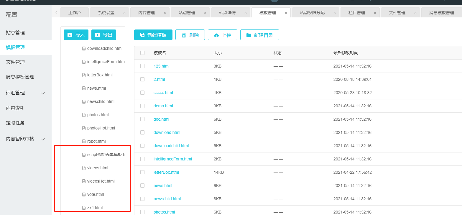 2、模板里面的栏目id是和站点关联的 如首页 新闻页面 都很多栏目路径 或者栏目id 写死 |