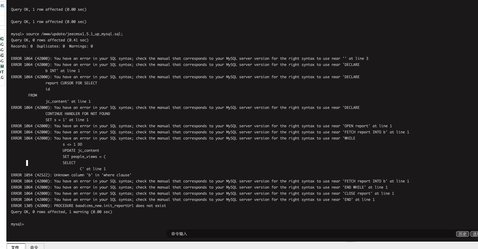 已恢复至1.4版本的数据库,按顺序执行:1.4-1.5的脚本无任何报错一切正常,但执行1.5-1.51还是上周报的错,卡在这里一直过不去。