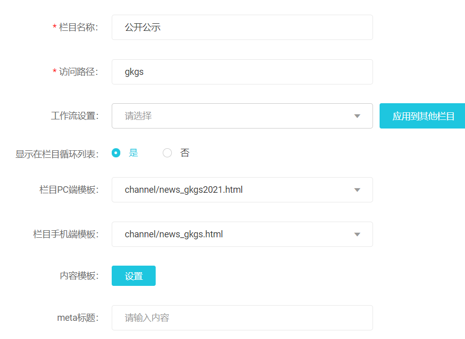 我给的第一幅图片上,写上了我配置栏目的pc端的模板,已经配置了 |