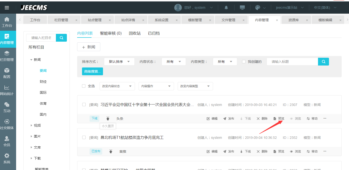 主题 : 内容管理未发布和已发布在哪设置可不可以预览