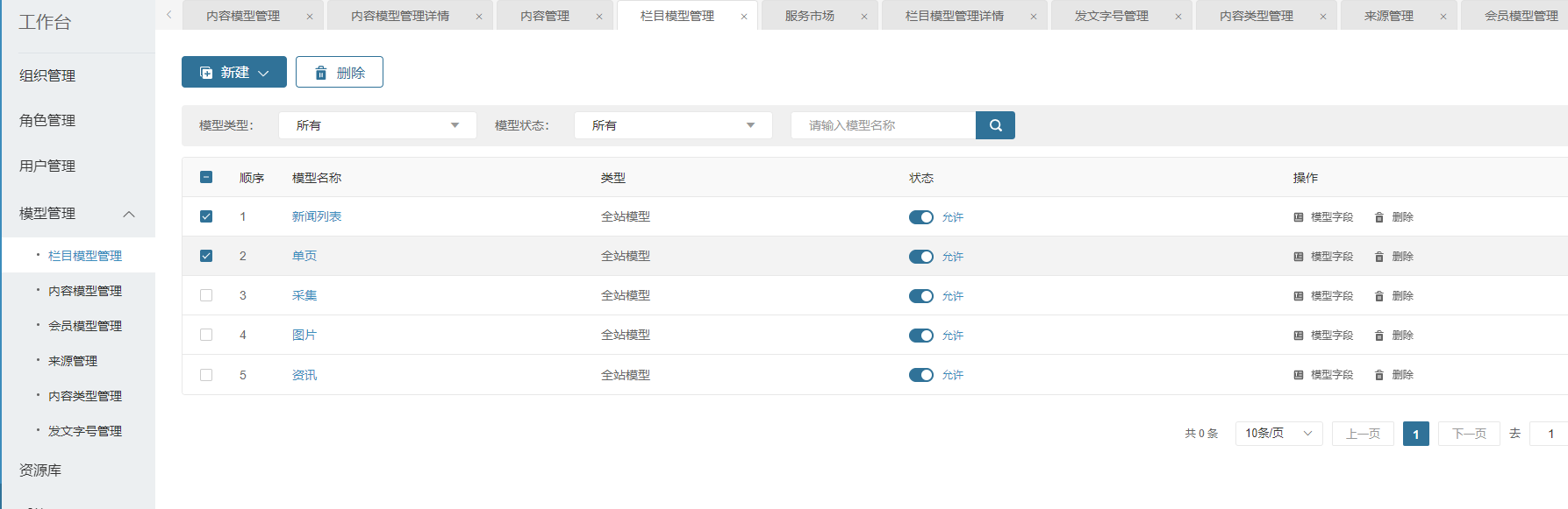 主题 : 新建了模型,在栏目中无法选择栏目模板 |