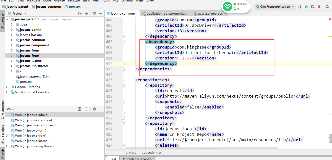 <groupId>com.kingbase</groupId> <artifactId>dialect-for-hibernate</artifactId> <version>5.2.17</version> </dependency> 这个一直加载不下来,跟这个有关系吗 |
