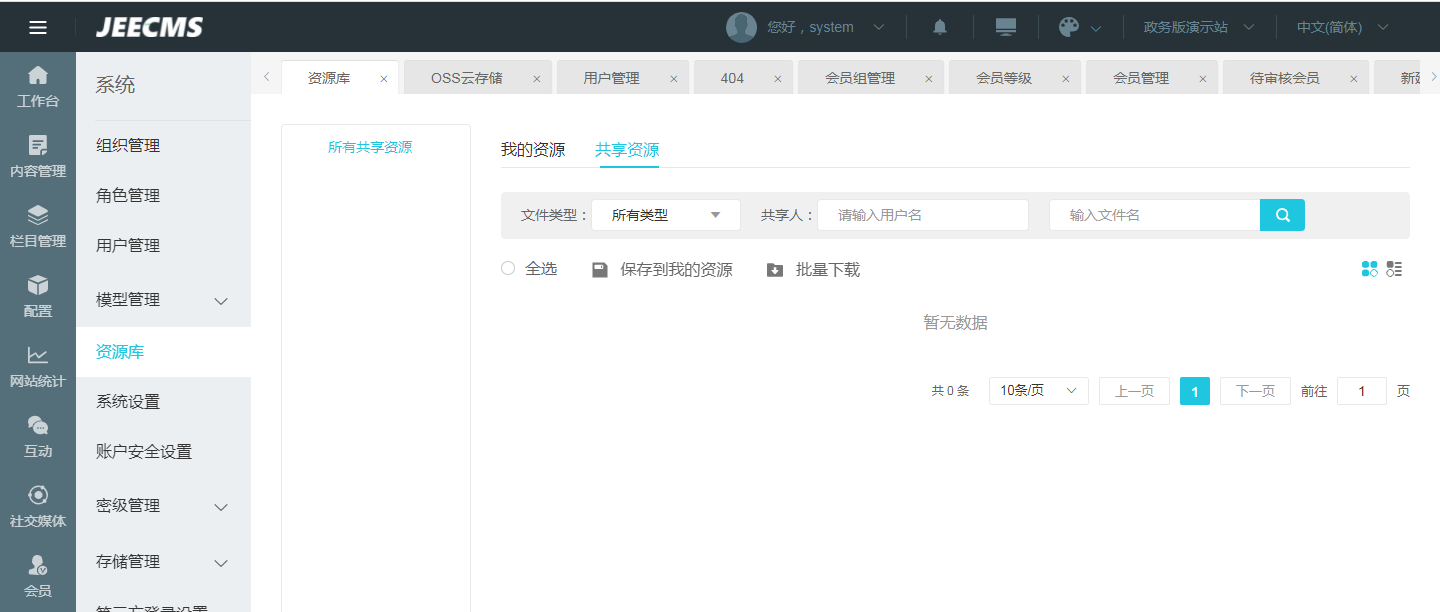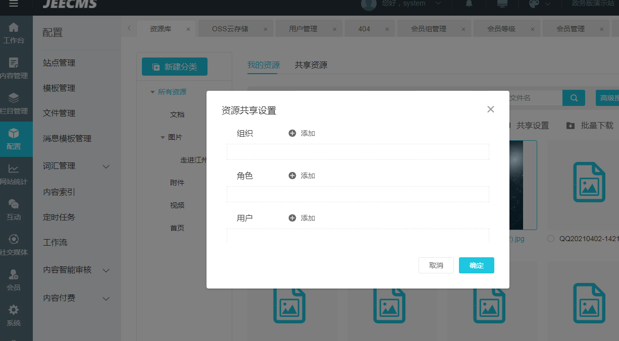主题 : jeecms后台(资源库)点击:资源共享设置报错 |