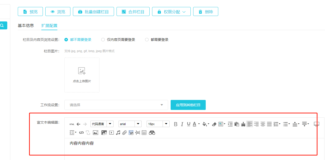 栏目下富文本框调用:[#list channel.realTxts as txt]  ${txt.attrTxt} [/#list]