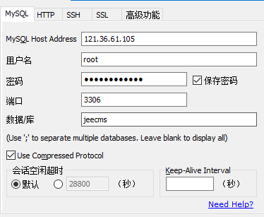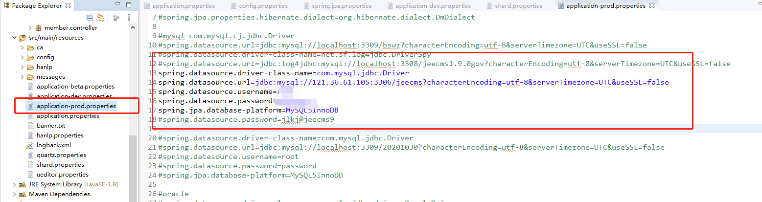 现在配置的是 jeecms-front 下的 application-prod.properties 文件里的数据库信息