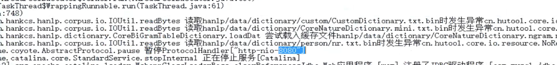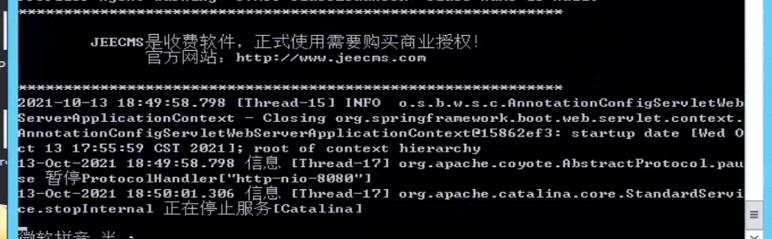 11-Oct-2021 20:05:32.089 信息 [Thread-16] org.apache.coyote.AbstractProtocol.pause 暂停ProtocolHandler["http-nio-8080"]