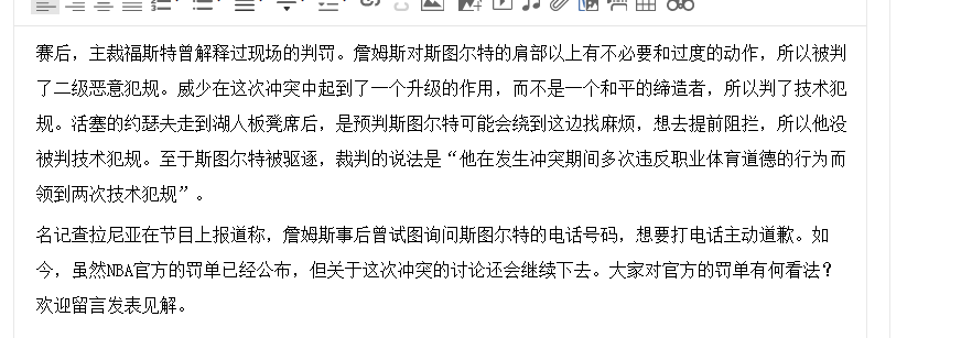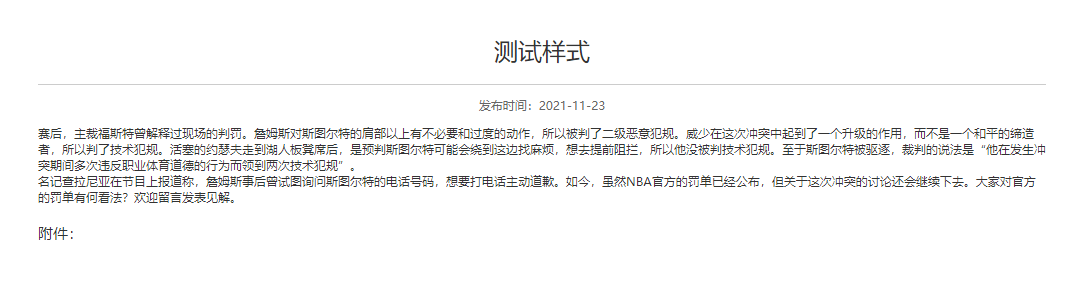 就是如果直接复制粘贴到编辑器里,然后直接发布,发布出来的新闻与编辑器的默认样式是不一样的 只有我手动设置下格式,再发布,发布的新闻才带样式 |