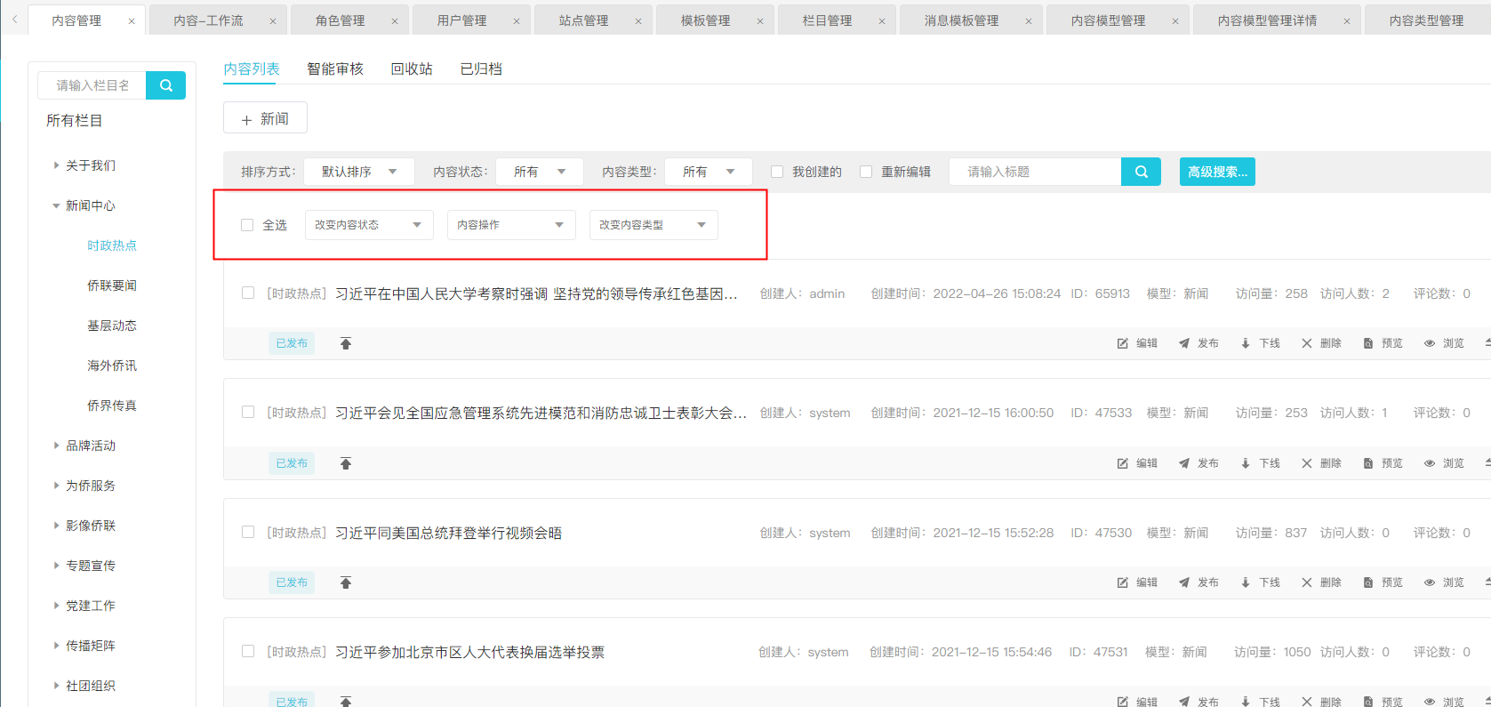 ![]() 请问这个地方的工具栏可以通过配置取消掉吗?我发现引入工作流之后,新闻待审状态的时候虽然下面的发布按钮不能点击,但是这个修改状态的可以使用 |