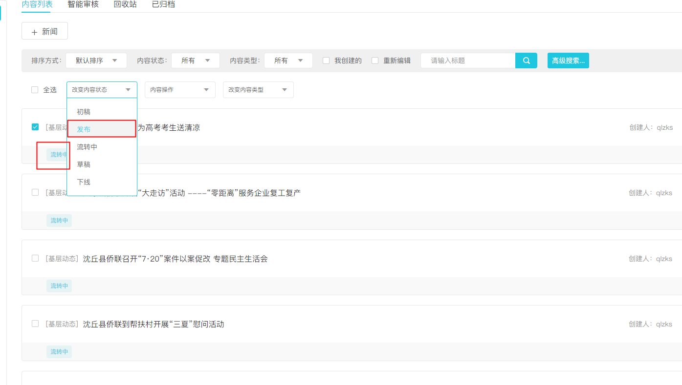 回复第21楼是的,流转中的新闻,还可以通过这个地方直接把状态改了