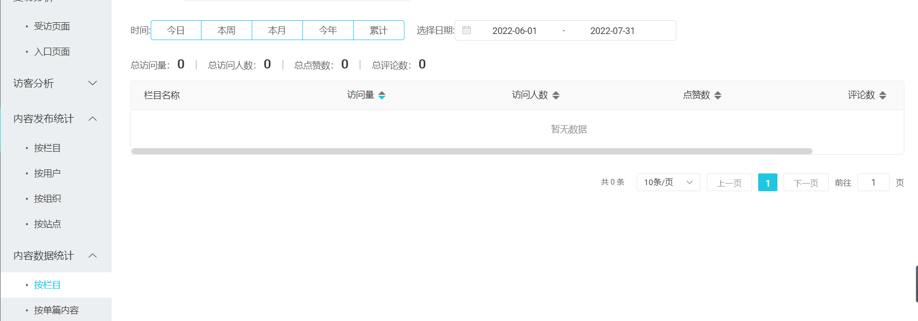 主题 : 各个栏目的点击率和阅读量的数据统计表,或者折线图,或者趋势图在哪看