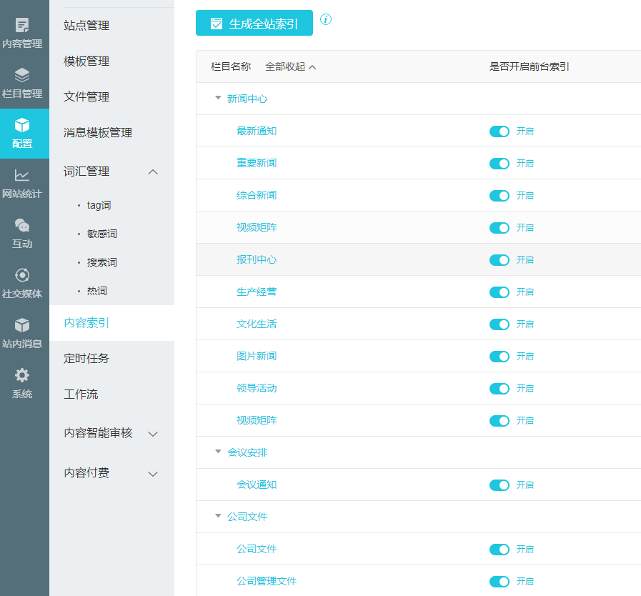 综合新闻、视频矩阵能搜到,重要新闻搜不到,这是还需要配置什么吗?