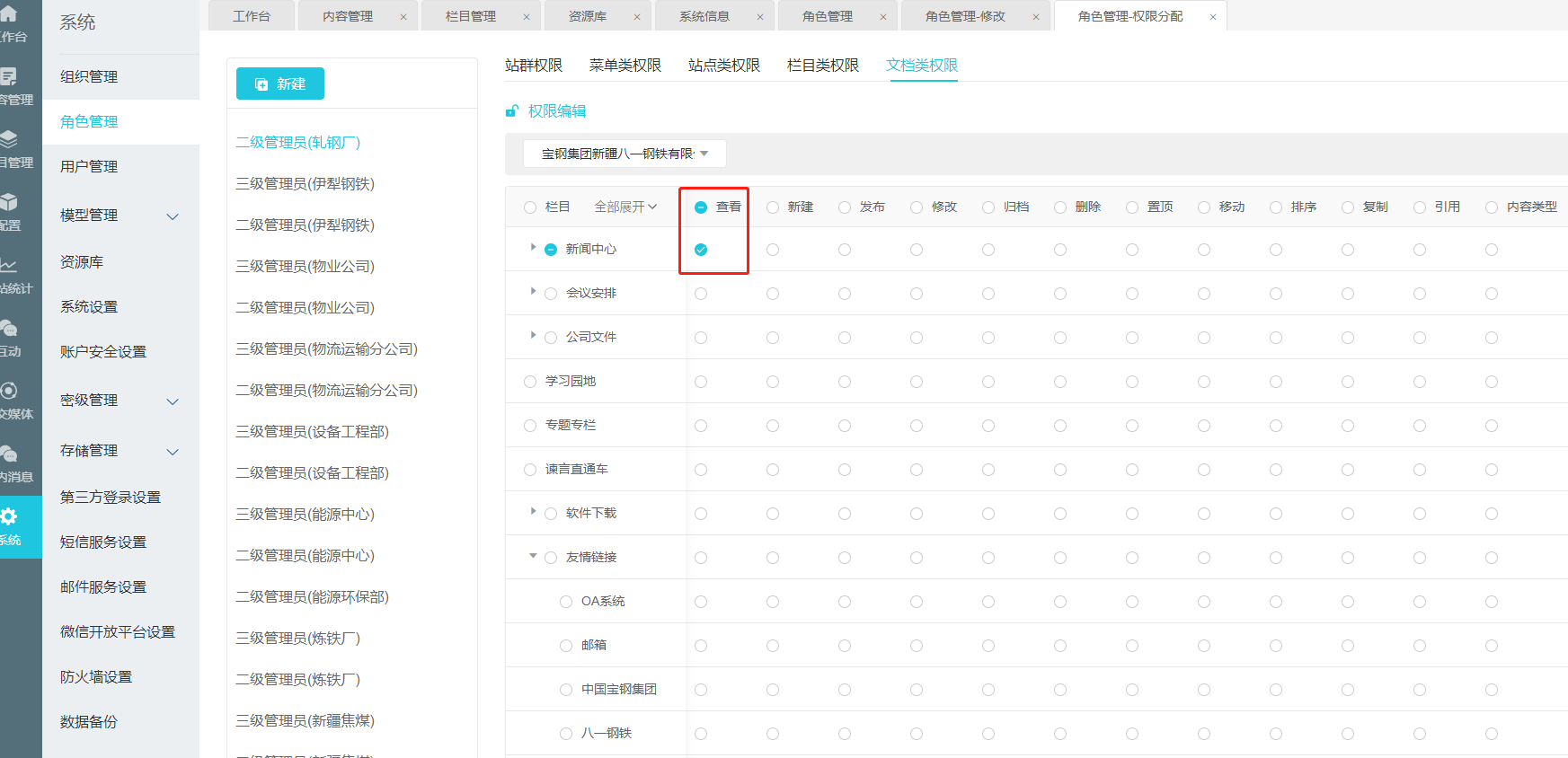 系统》角色管理或者用户管理设置
