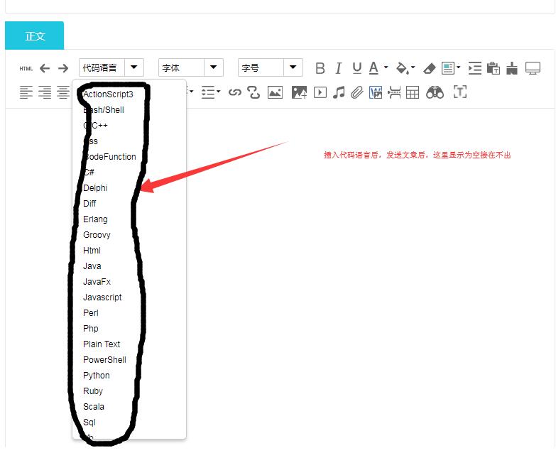 主题 : 1.14版本富文本编辑器插入代码语言不显示