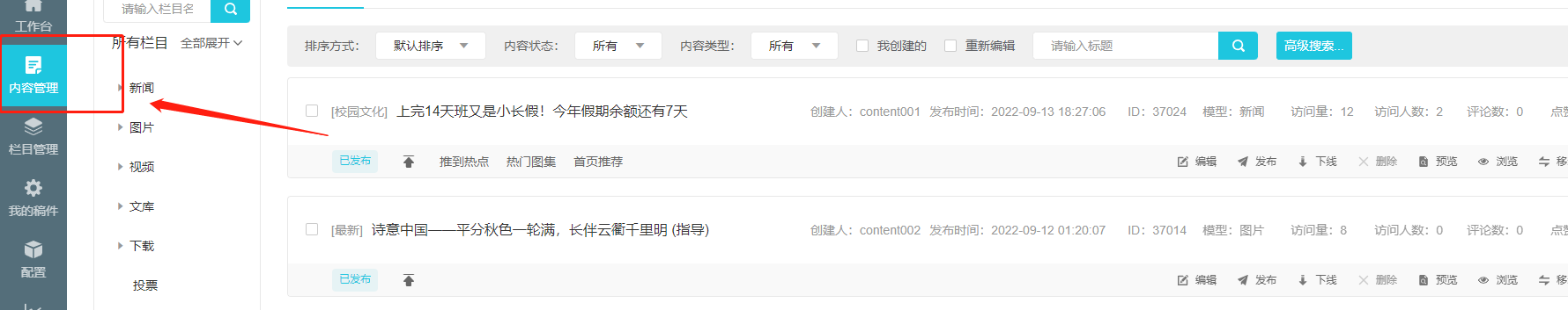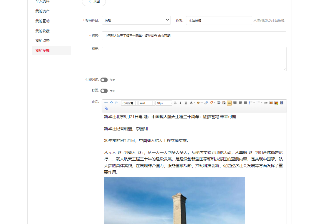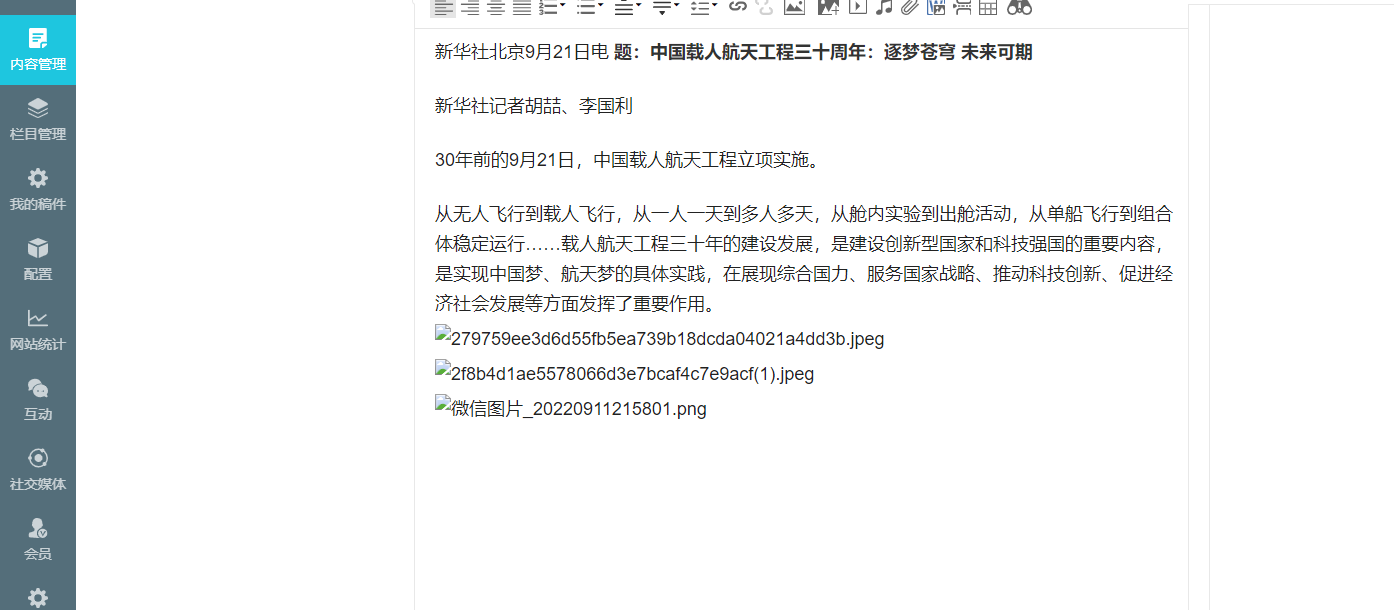回复第5楼        我是从前台的个人中心,投的稿件,在正文里加入图片也成功了,,提交之后,我在后台的内容管理里找到那篇稿件,点开后就成这样了,我看他用的是下载的模型,我看的是content