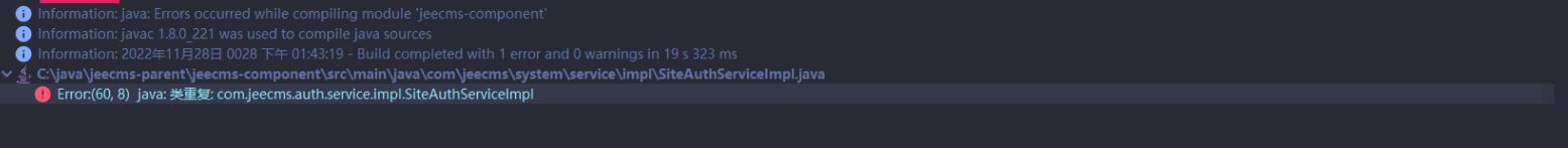 Error:(60, 8) java: 类重复: com.jeecms.auth.service.impl.SiteAuthServiceImpl