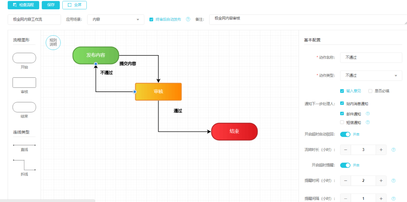 我看您这工作流配置的超时提醒是一小时一次?这实际上收到站内信息是多久呢?查看下数据库