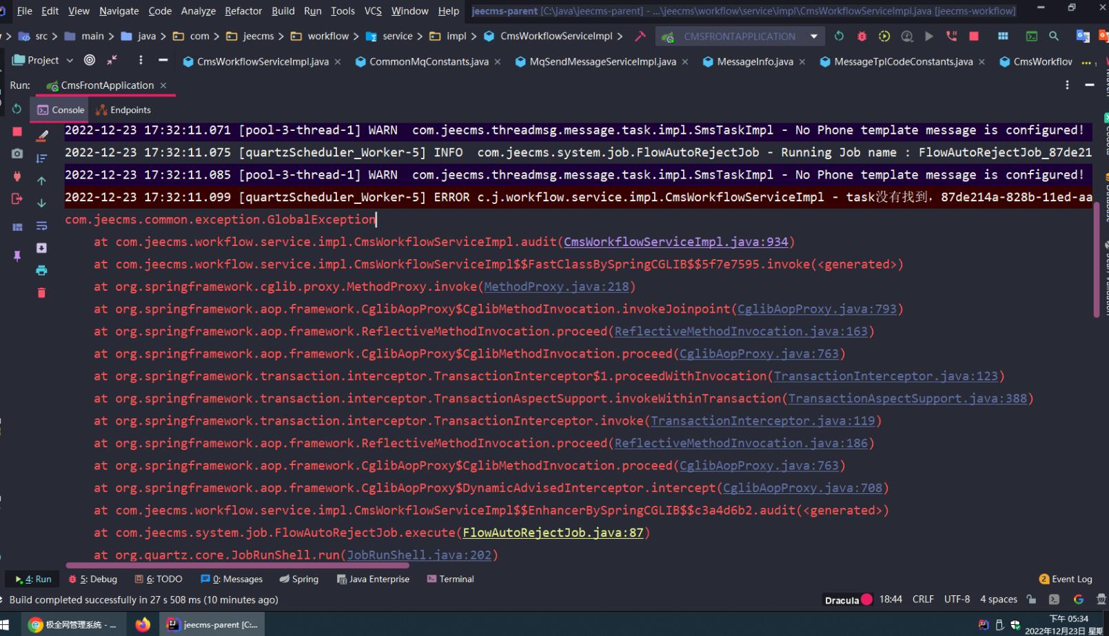 2022-12-23 17:32:11.131 [quartzScheduler_Worker-5] ERROR com.jeecms.system.job.FlowAutoRejectJob - 自动驳回失败null
