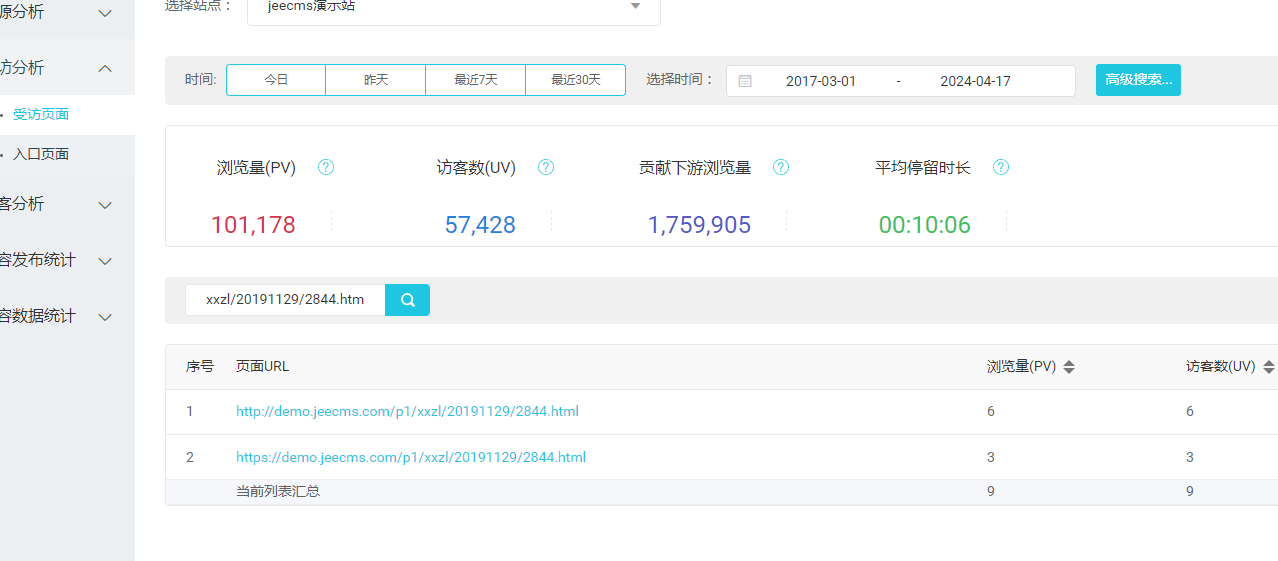 后台这个页面地址统计的数据实际目前只保留了两天的量,记录过多影响到了性能,定时任务清理了 |