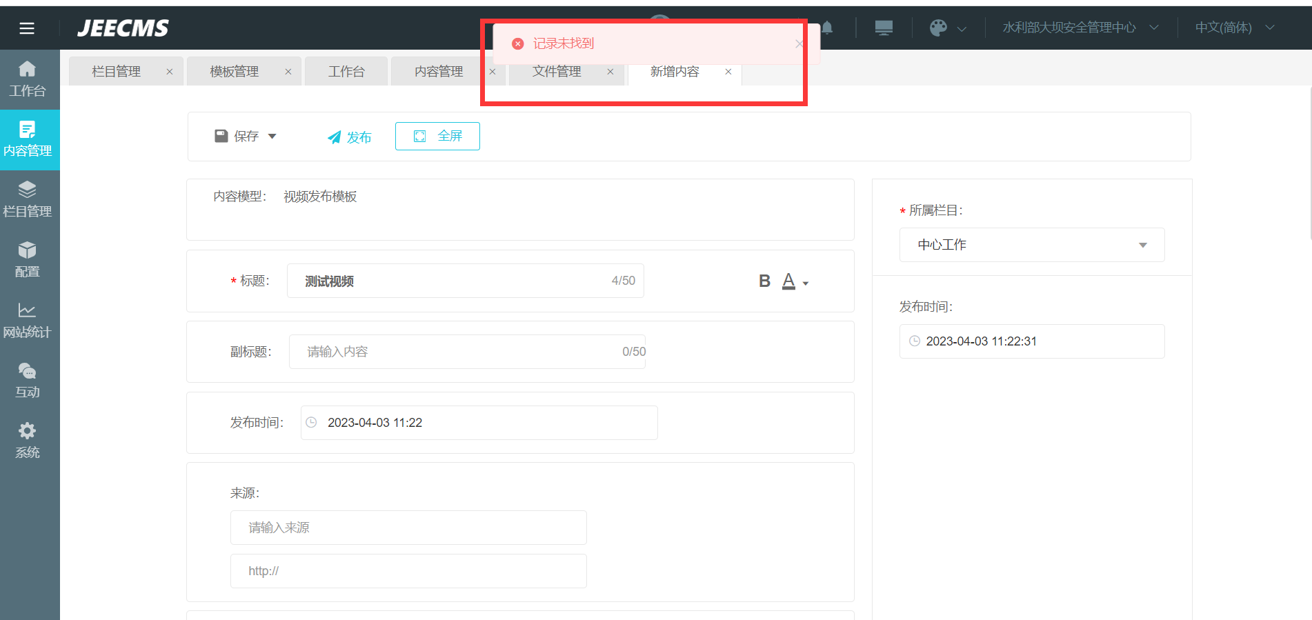 主题 : X1标准版新增模板发布视频显示记录未找到