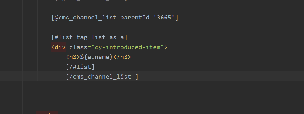 [#list tag_list as a] <div class="cy-introduced-item"> <h3>${a.name}</h3> [/#list] [/cms_channel_list ] 这是取到顶层栏目 [@cms_channel_list parentId='1000'] [#list tag_list as a] <div class="cy-introduced-item"> <h3>${a.name}</h3> [/#list] [/cms_channel_list ] 这是取子栏目列表 |