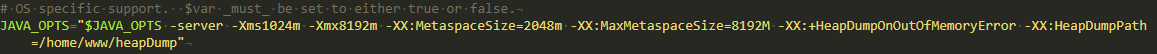 在JAVA_OPTIONS变量中增加 -XX:+HeapDumpOnOutOfMemoryError -XX:HeapDumpPath=${目录}。 |