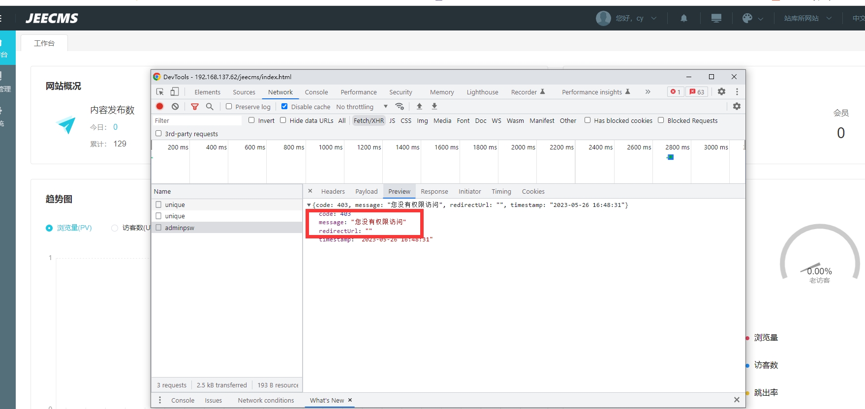 您看看什么接口没有权限吧,F12查看下