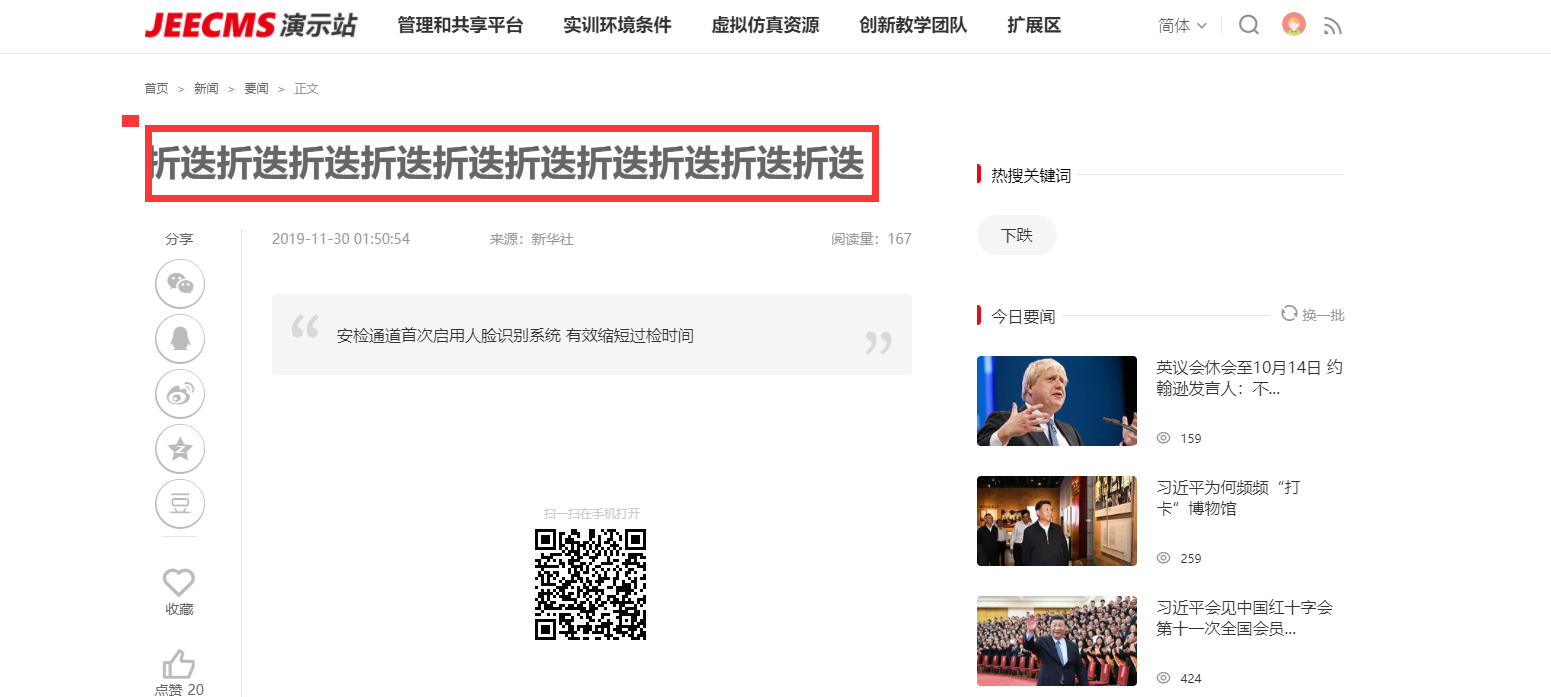 全新的部署的系统 没有修改过应该不是js影响 你们那边试试 后台编辑 “叠” 这个字是正常的 点浏览文章后显示为 “迭”