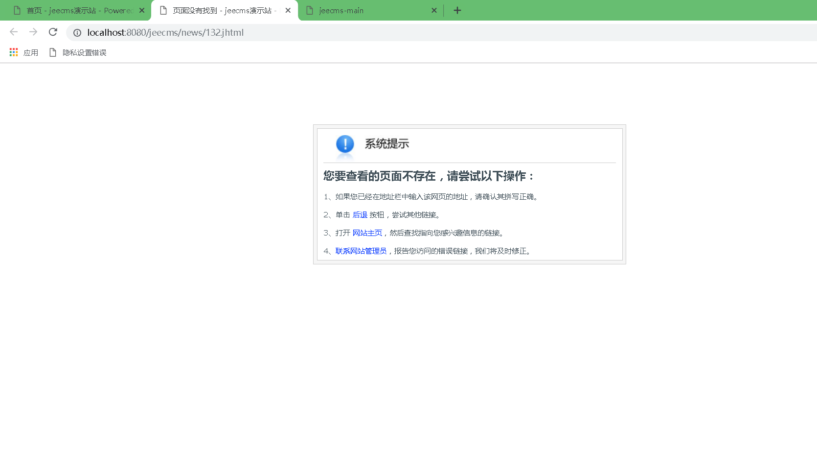 jeecms进入前台后,点击前台首页中的内容,系统提示页面不存在