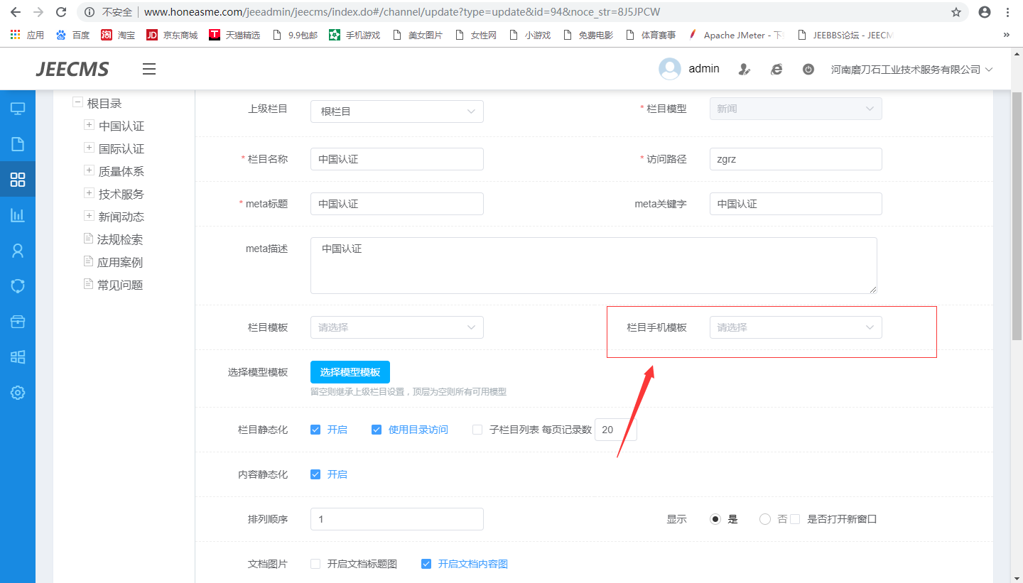 您看下上面的这个截图 我看了下您的栏目设置 您都没有配置对应的模板 您配置后再用手机访问下