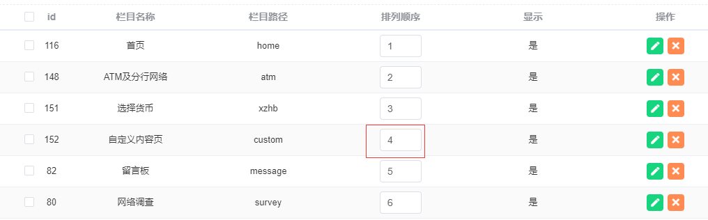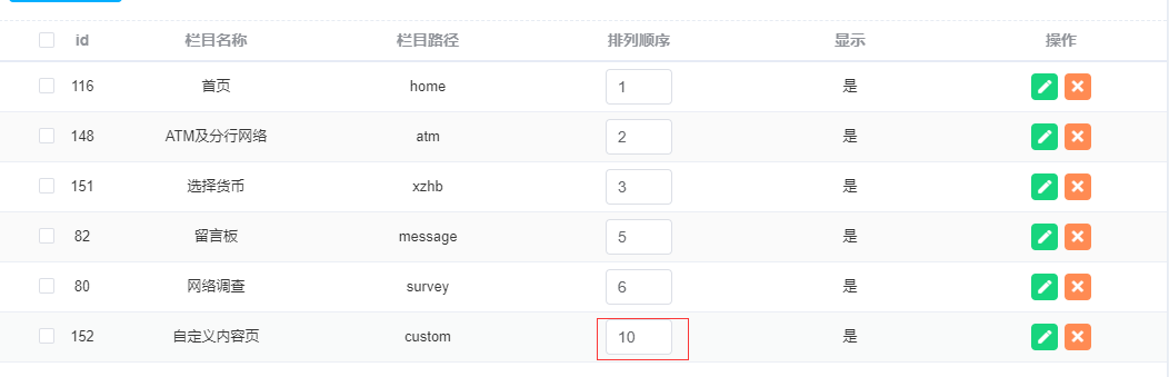 这个栏目一开始是排序是4,点击修改,即使什么都没有改直接点保存,排序也会自动变成10