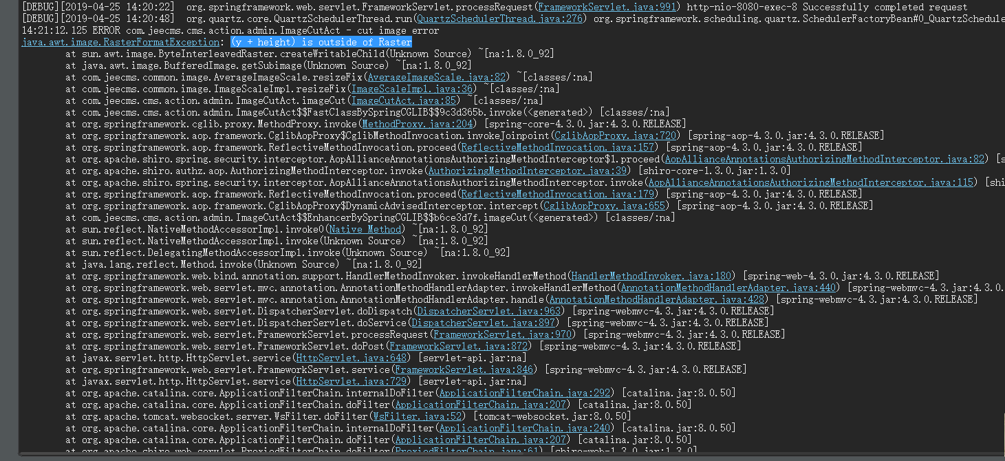裁剪图片时报这个错误:(y + height) is outside of Raster
