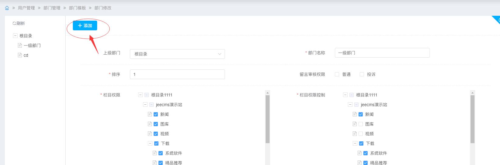 ![]() 这个是上个问题的截图 还有一个问题,就是你点击你建的一个部门,再点击左上角的”添加“按钮,也是有问题的,跳转的页面一直在加载也没有内容 ![]() |
