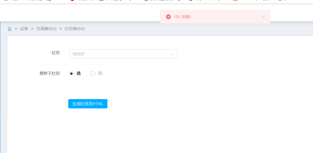 回复第8楼你好,我想请问一下,为什么我栏目静态化时分开一个个栏目静态化可以成功,没有选择栏目直接静态化所有却报101错误呢