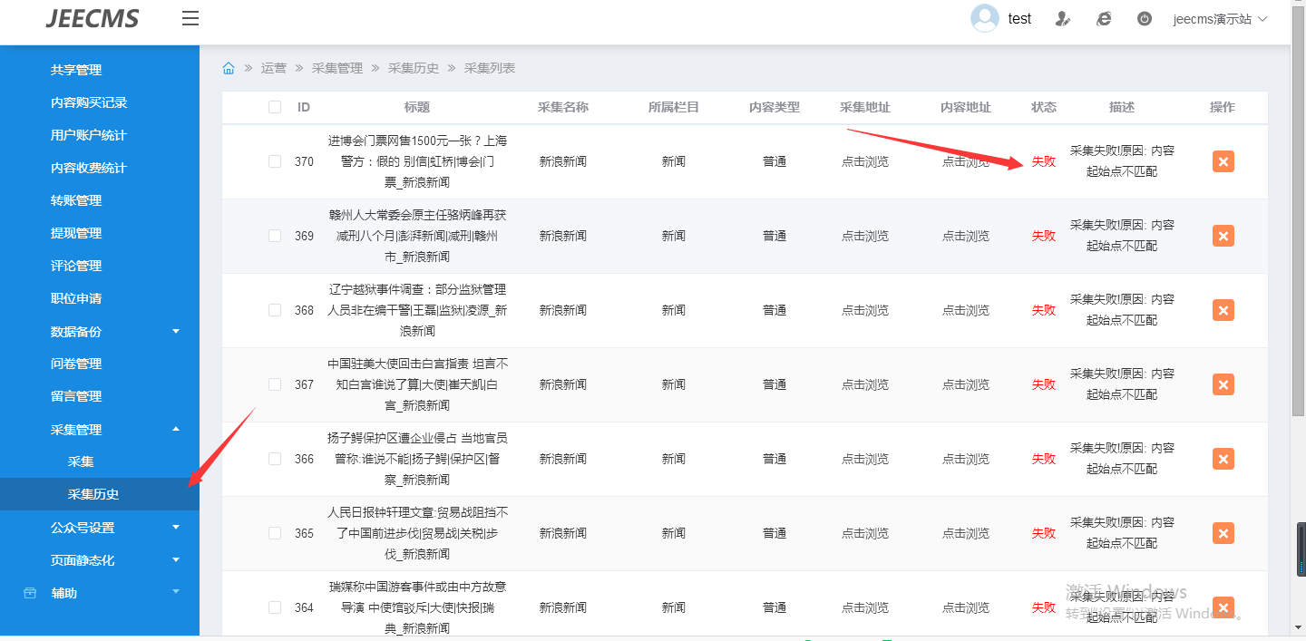 您好 采集失败的也是在采集历史中查看的 您可以看下我给您的截图 如果您那边没有采集失败的提示就说明您还没有采集失败的文章内容