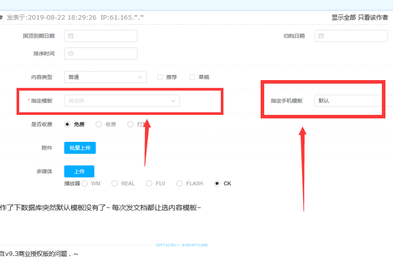 ![]() ![]() 求助默认模板的问题帖子:http://bbs.jeecms.com/bug/80314.jhtml 目前测试到后台的vue包有问题~ 内容页面的默认PC模板哪为空,必须每次发文章都要选择,请检查从重新发一份,谢谢 |