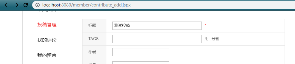 您这个使用的地址都不对啊 正确的发布稿件地址应该是我上面写的哪个http://localhost:8080/member/contribute_add.jspx