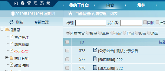 回复第3楼 我删掉栏目“动态新闻”重新创建一个栏目后,这个问题会出现到下一个栏目,这时候到“公示公告”栏目里面是空白的,而公示公告里面的新闻会出现在下一个栏目里。。。。。