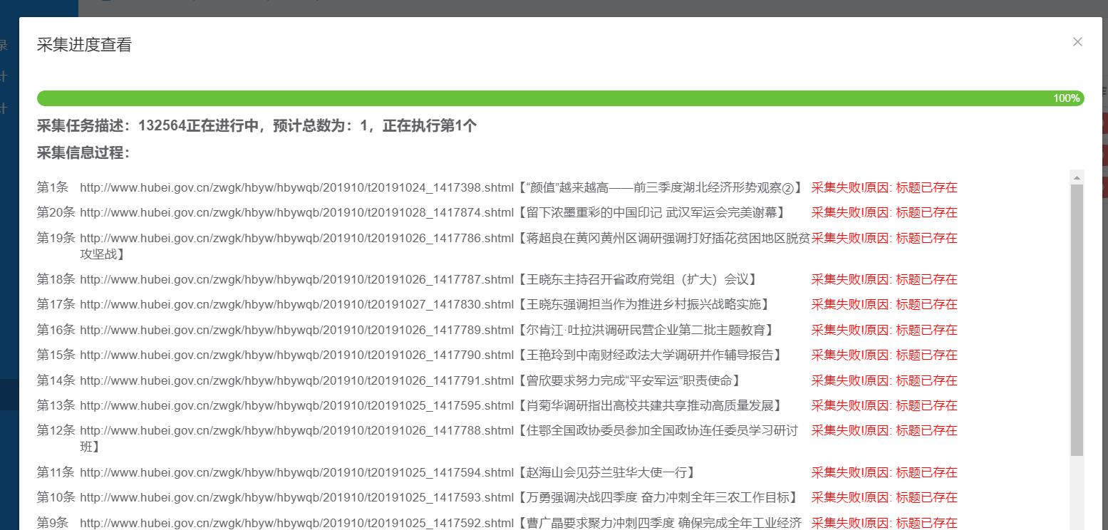 您这个提示就是标题以存在所以采集不成功 您等下我去问下是不是后台的删除只是逻辑删除 数据库还是有数据导致的
