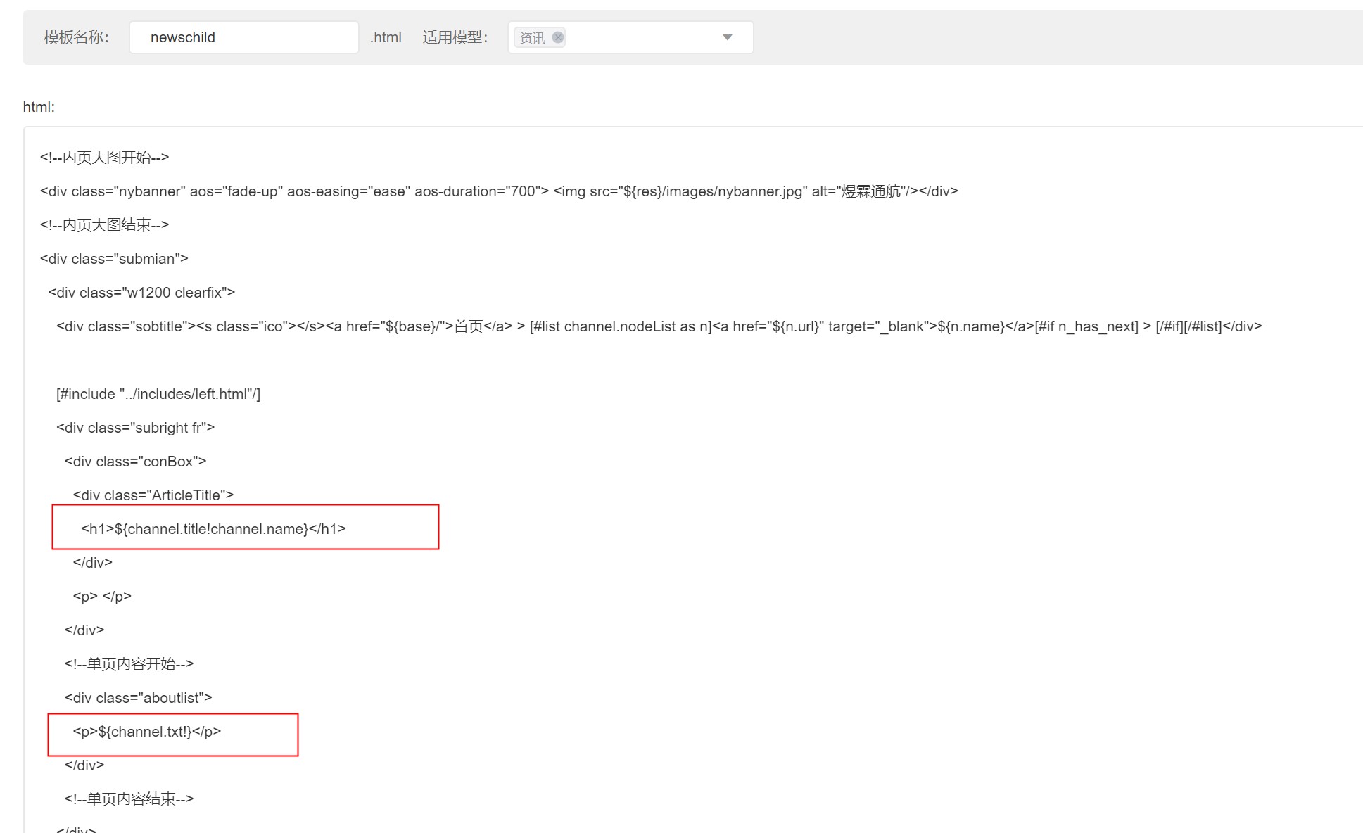 文本编辑,,但是我在页面调用 ${channel.txt!} 描述页不显示