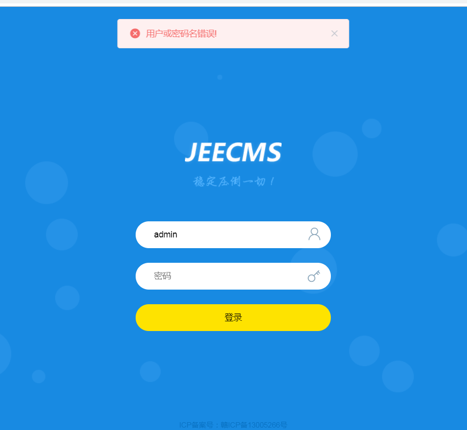 那您去数据库找下对应的jc_user表   找到admin这个账号  然后用百度的md5加密工具加密下123456保存到数据库的密码后  用这个密码登入看下