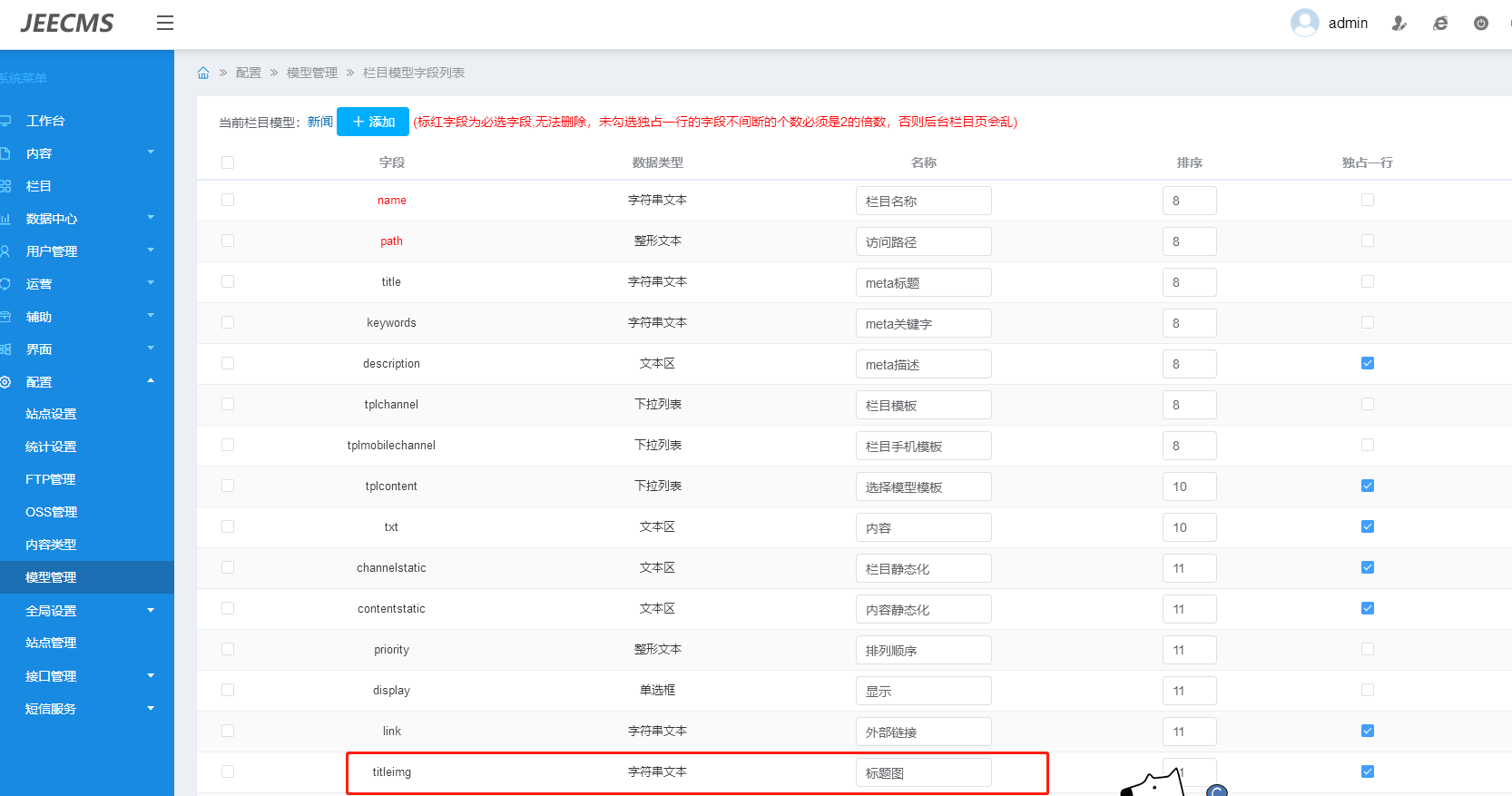 我指的是栏目管理中的字段功能开启 和模型字段选择不是同一个地方的功能