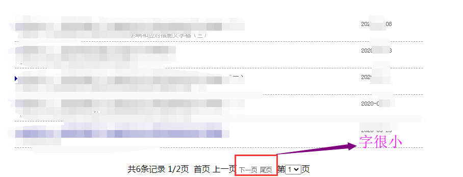 问题1:分页下一页和尾页字体显示异常,字体很小,正常的是一般大
