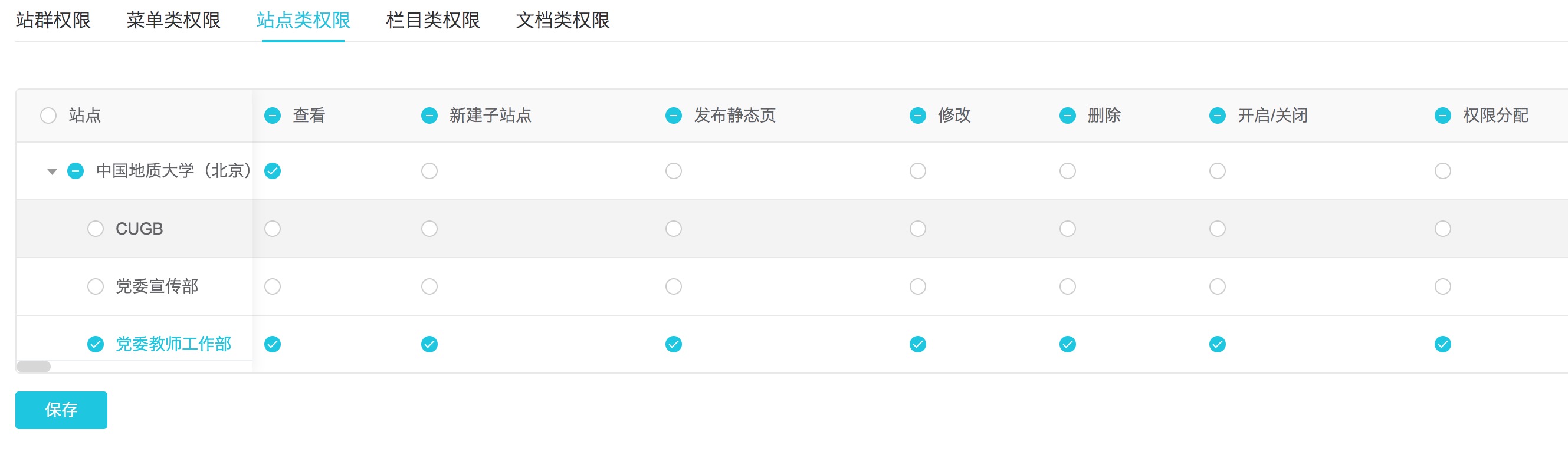 主题 : 新增用户的栏目权限有bug |
