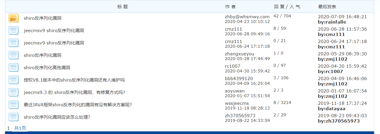 主题 : JEECMSV8.1版本中的shiro反序列化漏洞