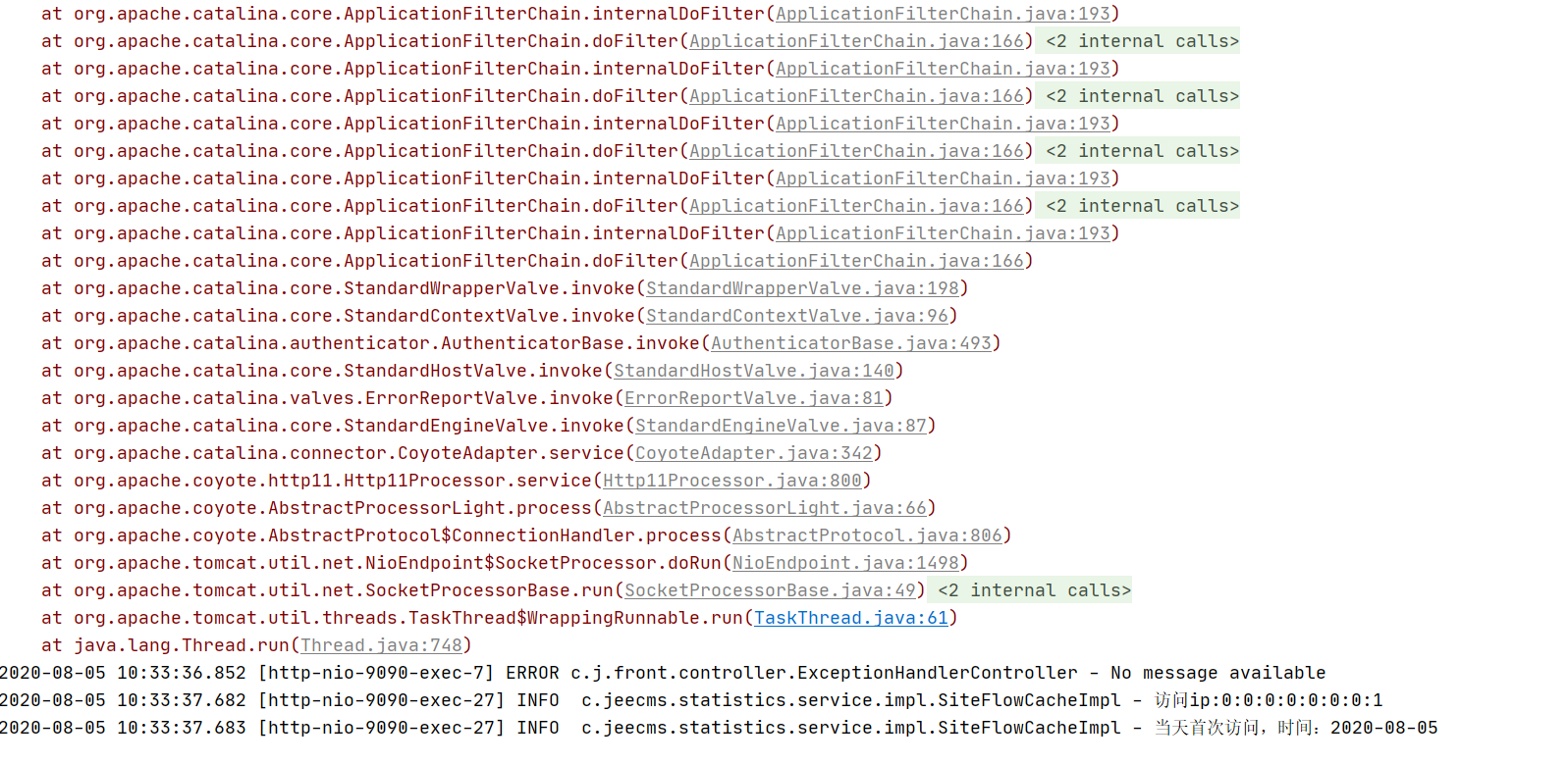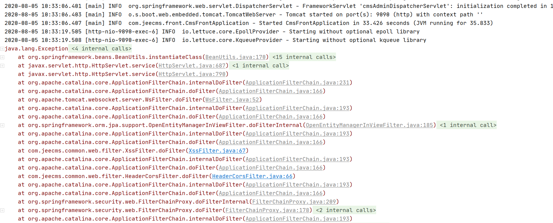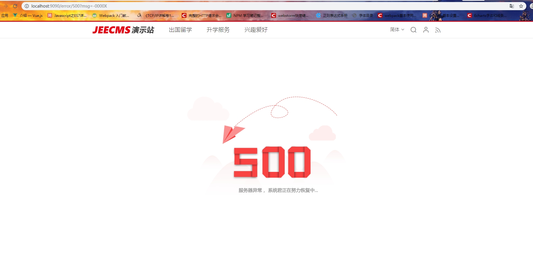 启动成功  但是一刷新页面就会报一下错误,前端页面显示500页面