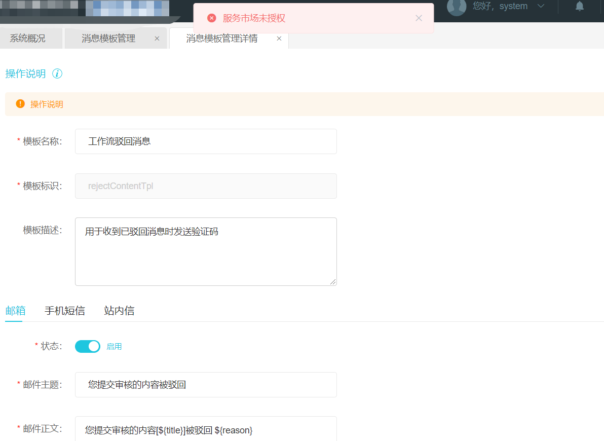 主题 : 邮件服务已经配置好,并可以发送测试邮件,但是 消息模板配置好之后,无法发送邮件 |