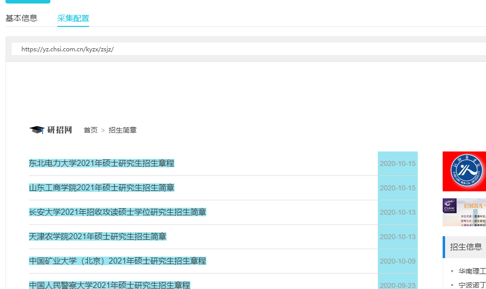 回复第35楼采集需要配置的,您要采集什么字段,什么列表这个需要您去选择