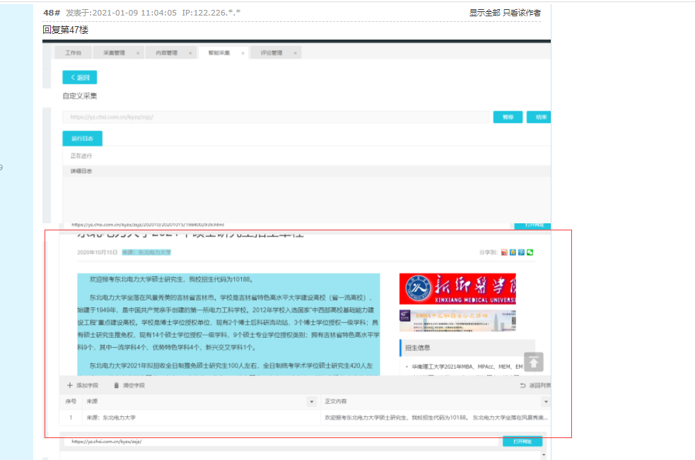 回复第61楼您需要深入链接采集,才能采集内容,当然不是都能深入链接,没有深入链接只能采集标题