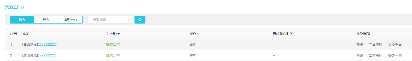 回复第3楼您这个问题我们本地复现不了,本地按您的流程是能达到您预期效果,一条代办,一条已办,您可以复现这个问题给我看吗