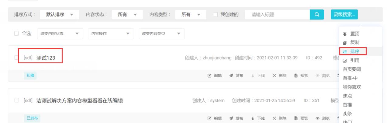 文章A不是有个排序功能吗,排在另一篇文章B的前面或者后面,可选排序列表里面为什么还有A?